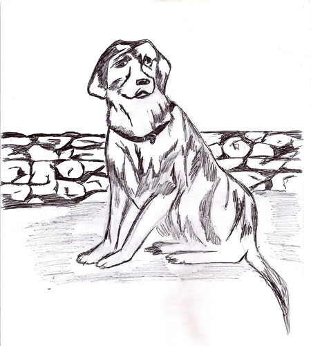 Nameless was christened Siddhartha—Sid when he was being yelled at—and slept outside our room on a little blanket. Illustration by ANJA.