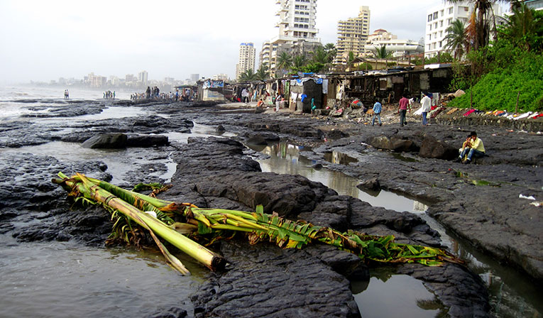 Both Shahrukh Khan as well as many migrant workers live at the edge of the sea, with the luxury of the view and the breeze. Photograph by Bronwyn McBride.