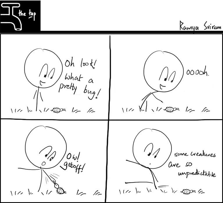 The Tap #26 by Ramya Sriram March 11, 2011 Tags bugs comics The Tap unpredictable 0 Comments The Tap #25 Previous Article The Tap #27 Next Article View Comments (0) Leave a ReplyYour email address will not be published.Name* E-mail* Website Save my name, email, and website in this browser for the next time I comment. Δ