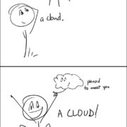 He pulls out the spray gun and paints her pink. “I knight you ‘Magenta.’” She smiles in approval. Her pink coat disguises her blush.