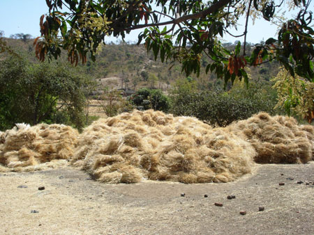 Below, collecting the golden grain sits Leela Bai, Vimal’s mother. She’s wearing a pair of very thick glasses, the kind they used to wear after getting a cataract operation. Modern-day laser surgery eliminates the need for such glasses but one doesn’t get modern facilities in the free sarkari eye camps. Sitting on her haunches, she deftly collects the wheat as it pours out of the thresher. The glasses magnify her eyes enormously and when she talks to me, it seems as if she is very interested in what I have to say, which of course, I chide myself, cannot be very true.