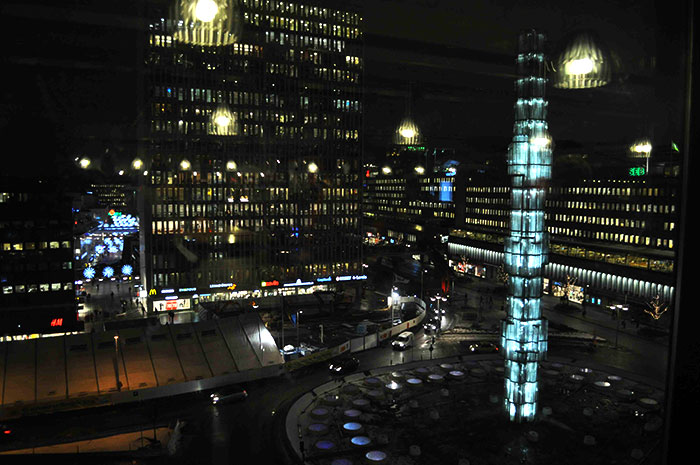 We sip coffee in a cafe on the highest level, overlooking the crystal pillar arrowing upwards from Sergels Torg. The coffee is black as sin. Swedes love coffee and Karl contrasts his experience in Hyderabad, the quintessential tea-drinking city. We reminisce about a particularly strong tikashan we had in a Irani cafe near Mir Momin ka Dayra. Cities, after all, are made of travellers who choose to stop travelling. Overlaid with our memories, cities speak to each other.
